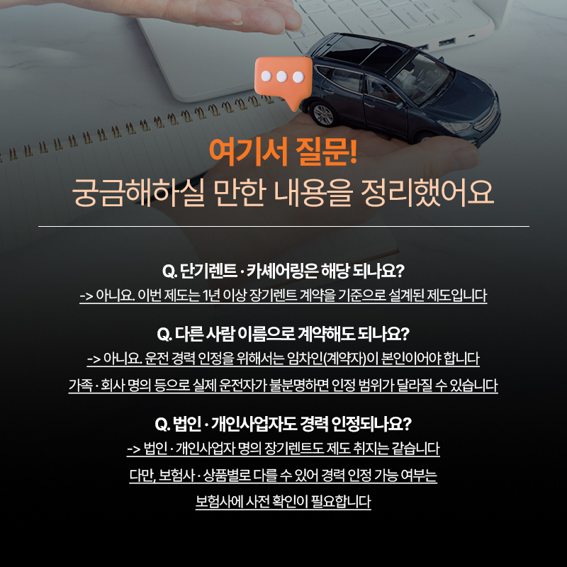 | 고충처리 및 컴플레인 관리 | 이름, 성별, 휴대전화번호, 생년월일, 주소, 운전면허번호, 이메일주소 | 동의일로부터 5년 |