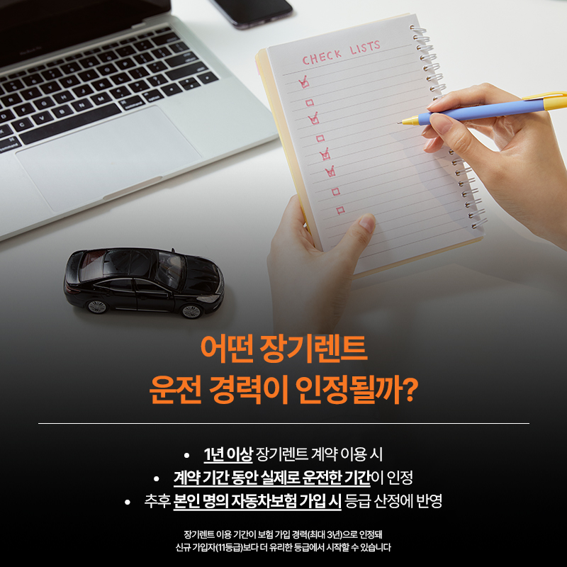 | 회사 장기대여 견적신청, 견적회신 및 상담, 장기대여 계약의 체결/이행/관리 | 이름, 성별, 휴대전화번호, 생년월일, 주소, 운전면허번호, 이메일주소 | 서비스 공급 완료 및 계약 완료시로부터 5년 |