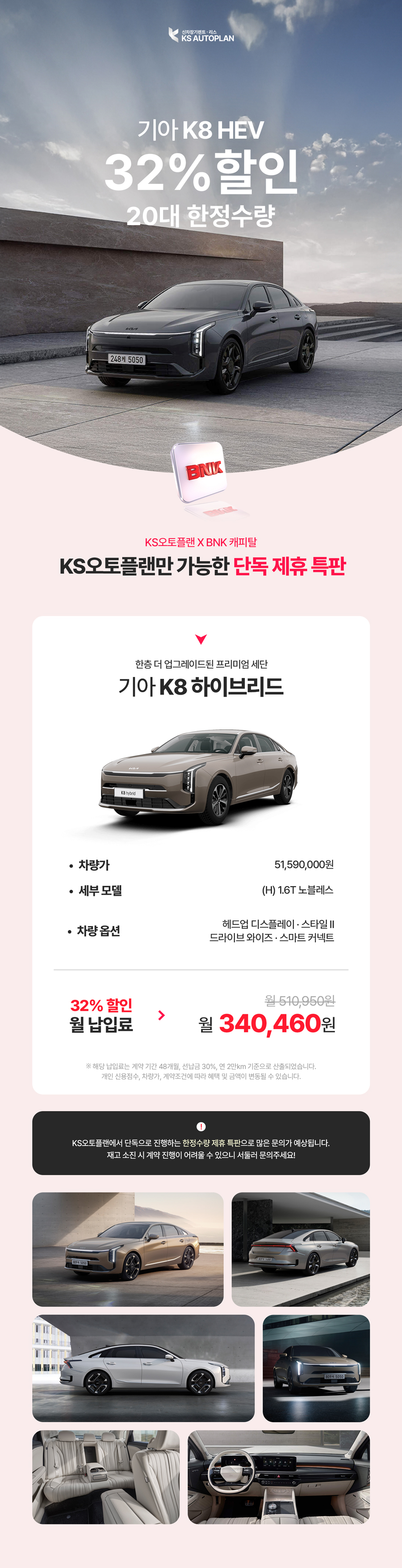 [기아 K8 HEV] KS오토플랜 X BNK캐피탈 제휴 특판