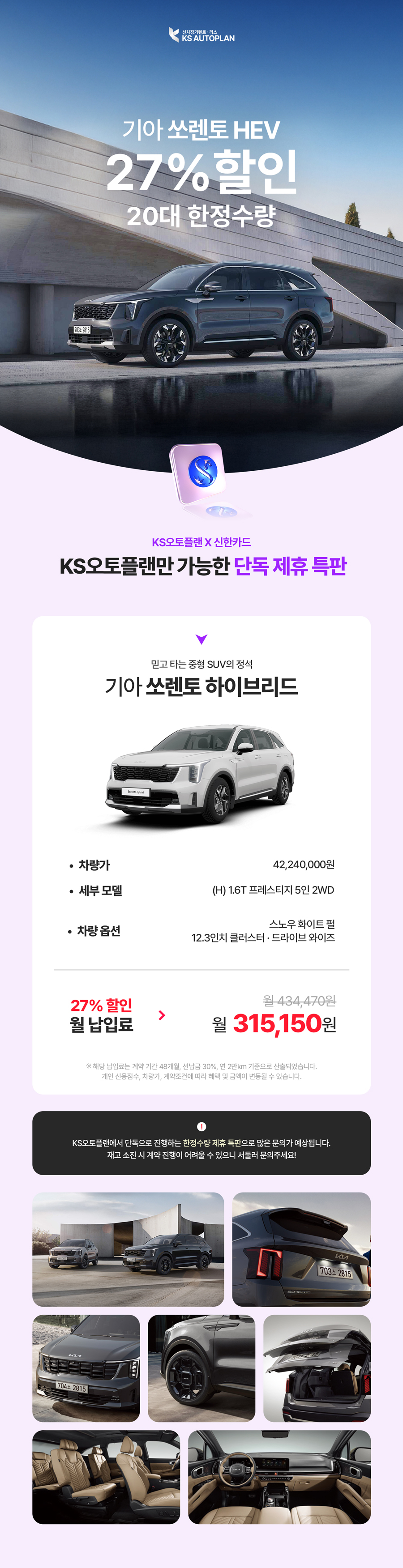 [기아 쏘렌토 HEV] KS오토플랜 X 신한카드 제휴 특판