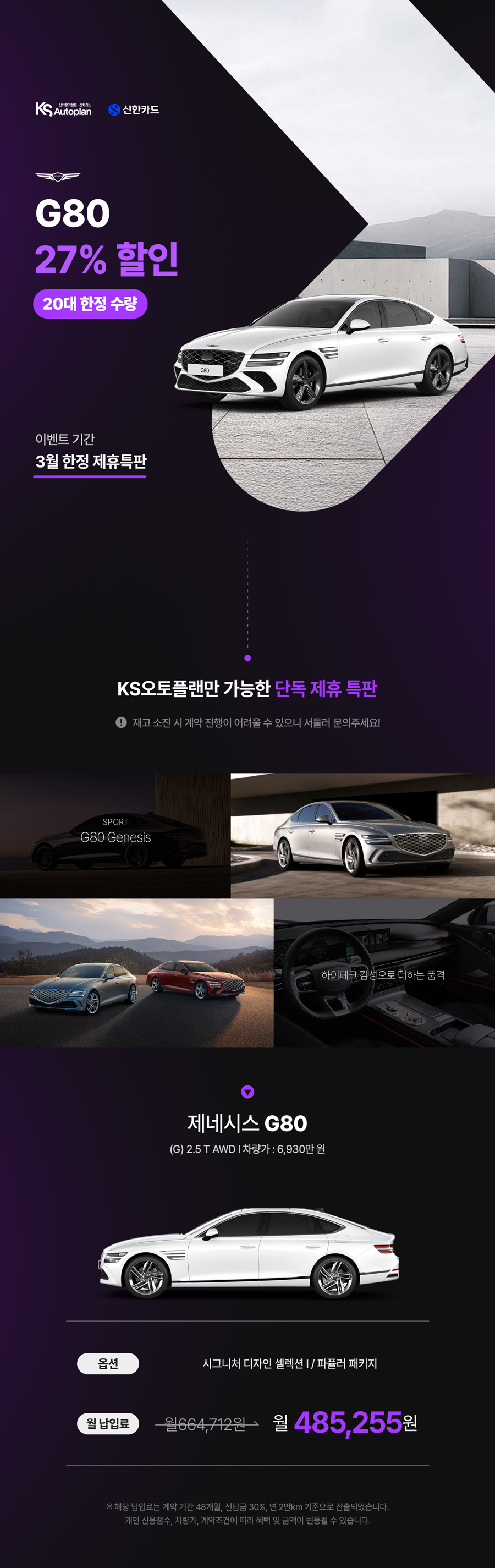 [제네시스 G80] KS오토플랜 X 신한카드 제휴 특판