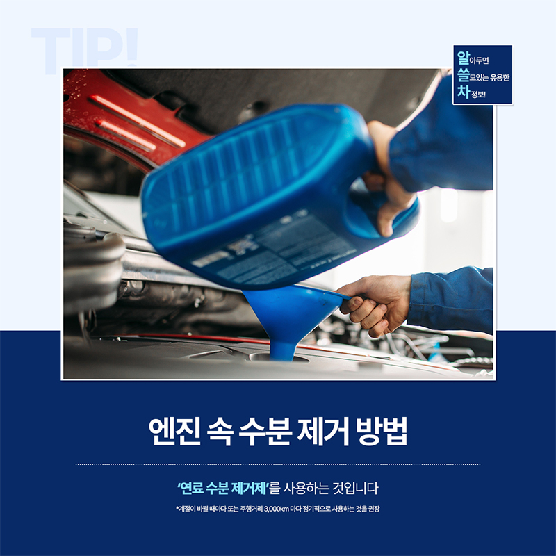 엔진 수분 제거제는 계절이 바뀔 때마다 또는 약 3,000km 주행마다