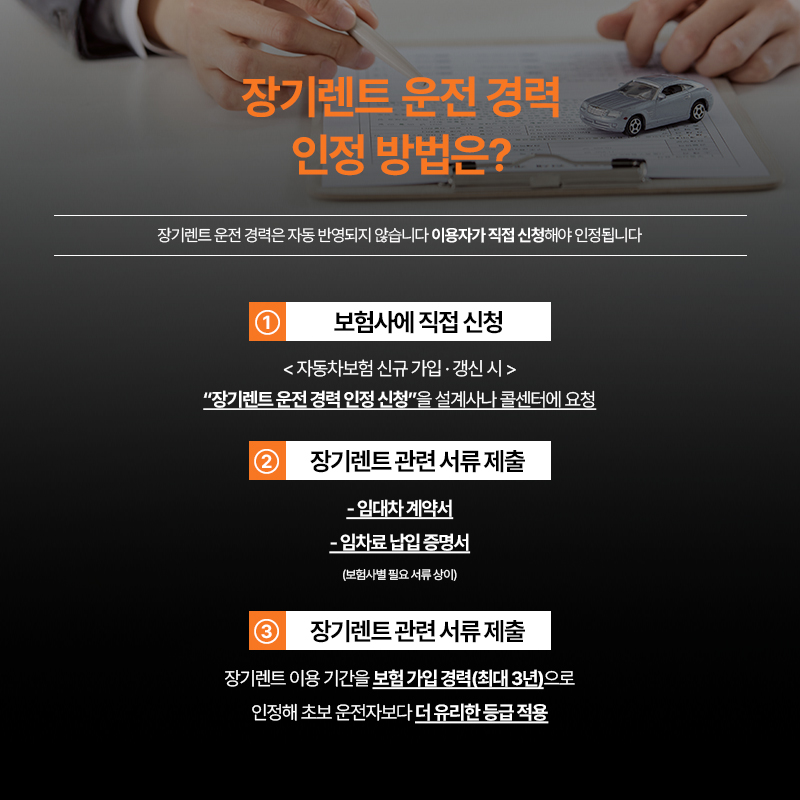 | 회사 장기대여 견적신청, 견적회신 및 상담, 장기대여 계약의 체결/이행/관리 | 이름, 성별, 휴대전화번호, 생년월일, 주소, 운전면허번호, 이메일주소 | 서비스 공급 완료 및 계약 완료시로부터 5년 |