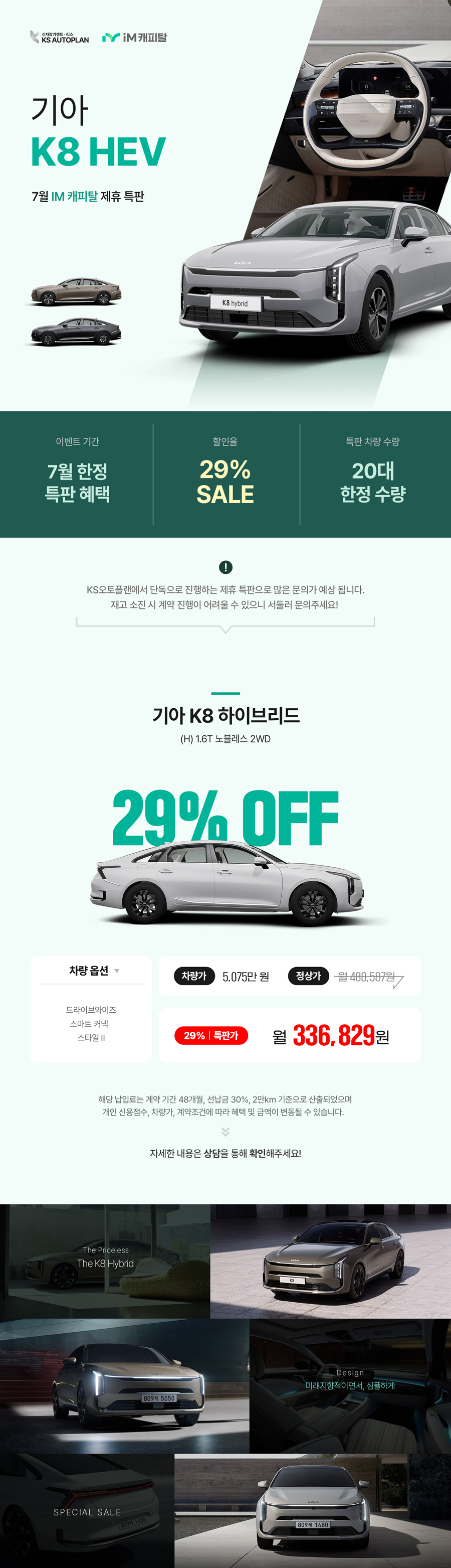 [기아 K8 HEV] KS오토플랜 X iM캐피탈 제휴 특판