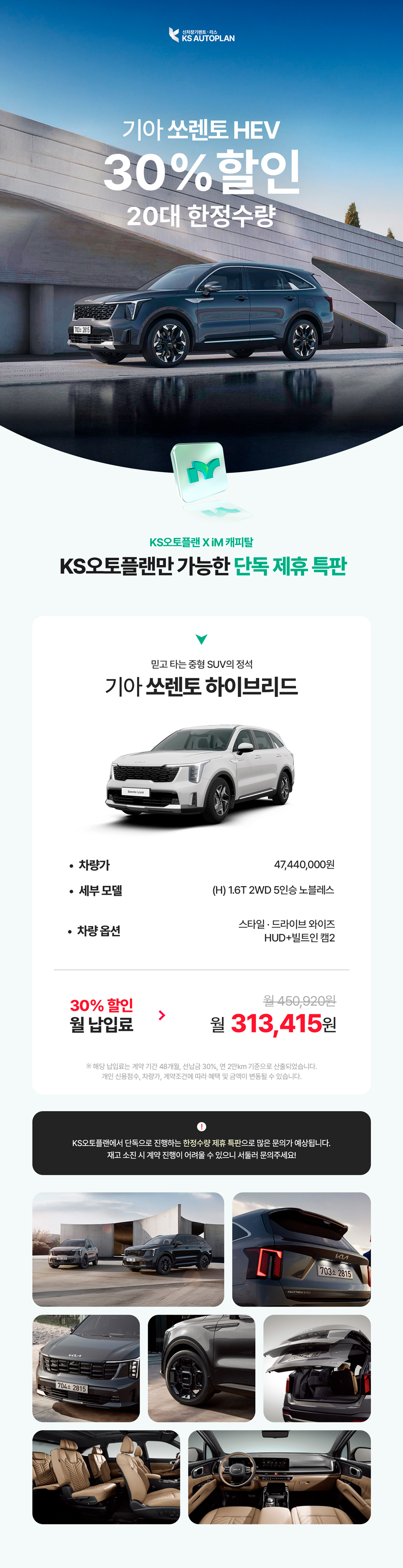 [기아 쏘렌토HEV] KS오토플랜 X iM캐피탈 제휴 특판
