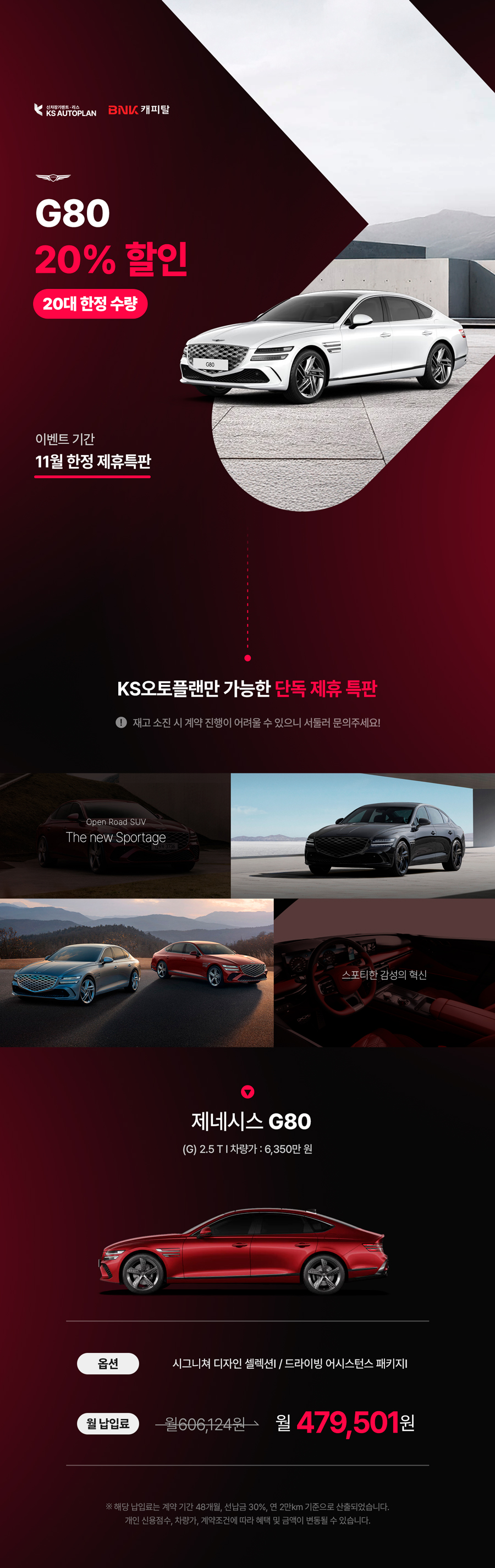 [제네시스 G80] KS오토플랜 X BNK캐피탈 제휴 특판