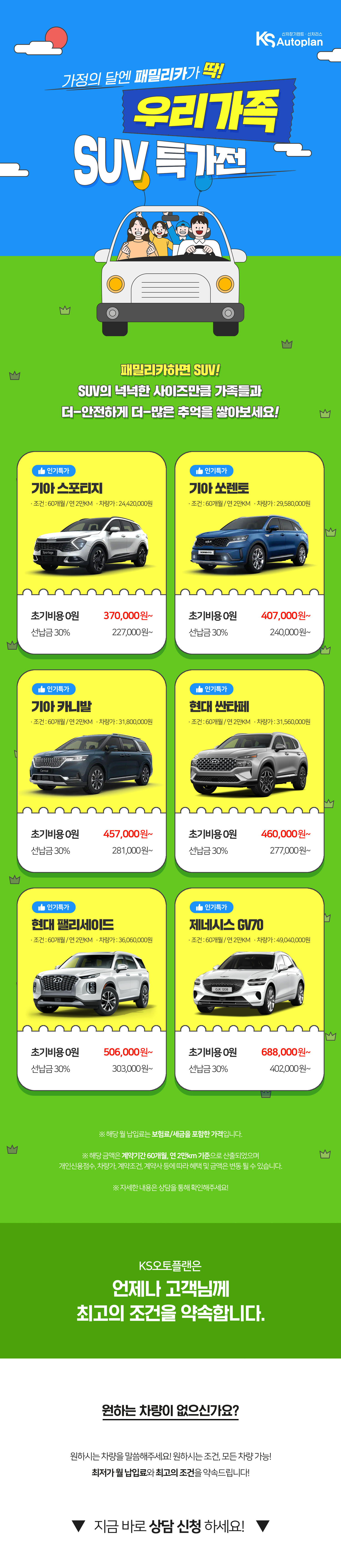 가정의 달엔 패밀리카가 딱! 우리가족 SUV특가전!