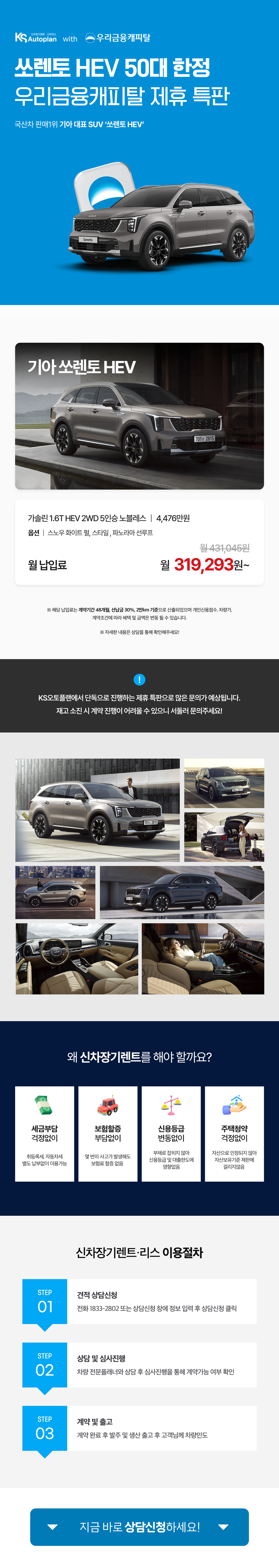 [기아 쏘렌토 HEV] KS오토플랜 x 우리금융캐피탈 제휴 특판