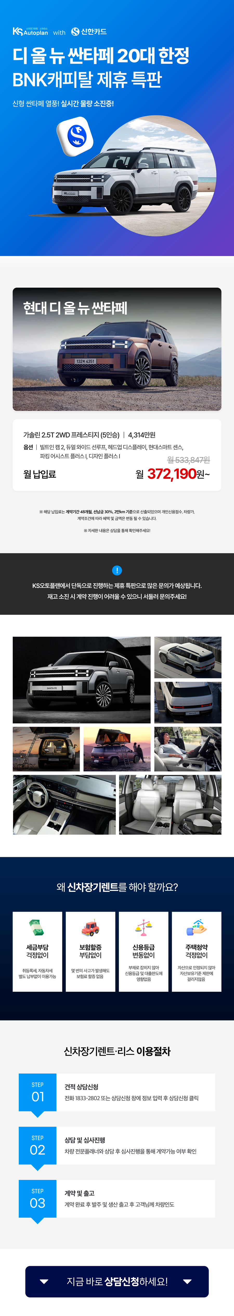[현대 디 올 뉴 싼타페] KS오토플랜 x 신한카드 제휴 특판