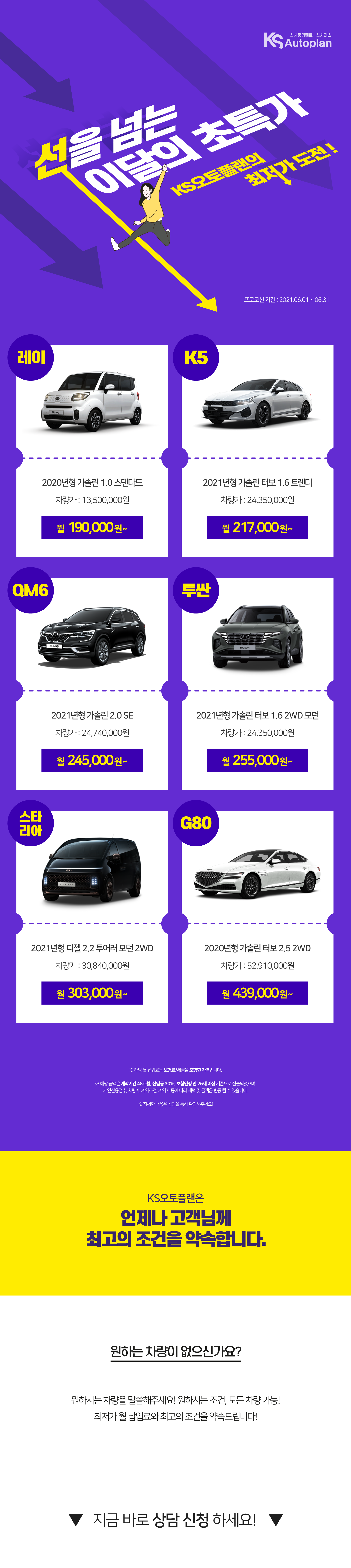 KS오토플랜의 최저가 도전! 선을 넘는 이달의 초특가!