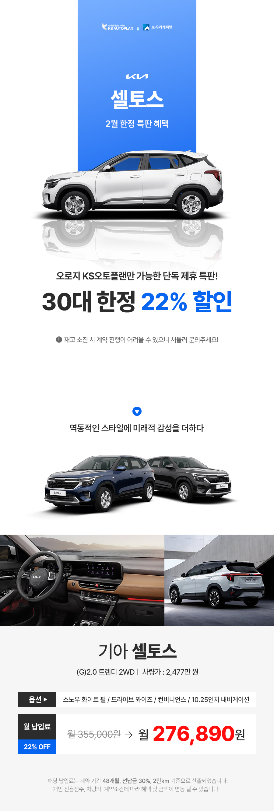 [기아 셀토스] KS오토플랜 X JB우리캐피탈 제휴 특판