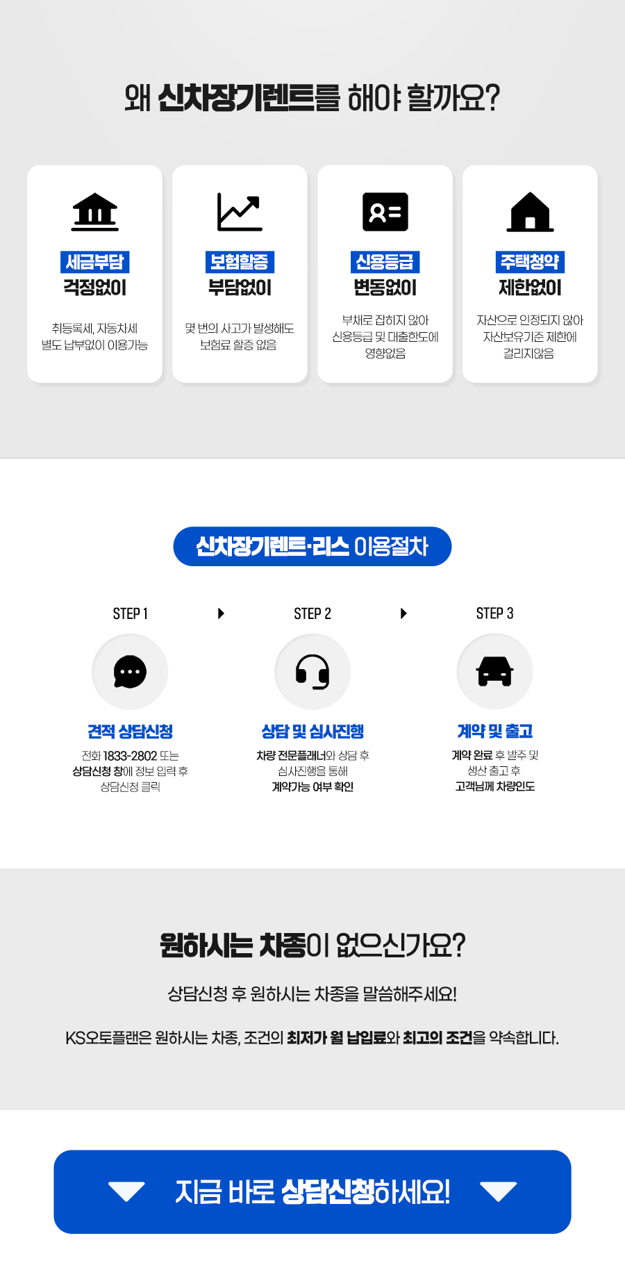 | 장기렌터카, 리스, 할부 등 견적상담 | 이름, 성별, 휴대전화번호, 생년월일, 주소, 운전면허번호, 이메일주소 | 서비스 공급 완료 및 계약 완료시로부터 5년 |