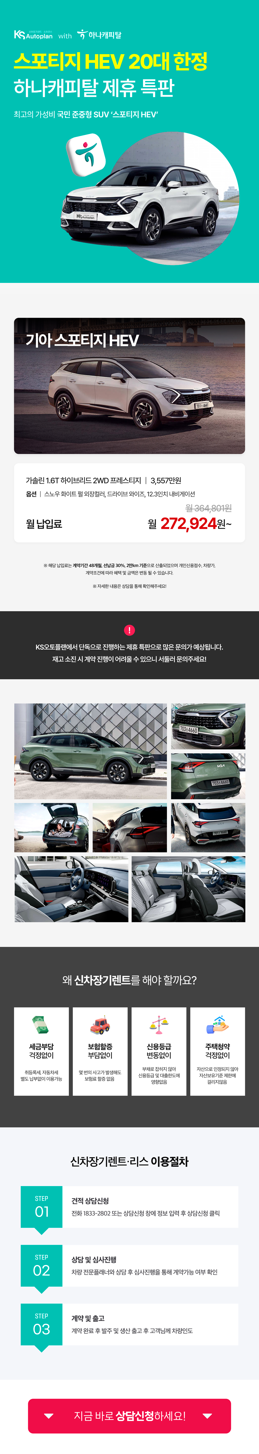 [기아 스포티지 HEV] KS오토플랜 x 하나캐피탈 제휴 특판