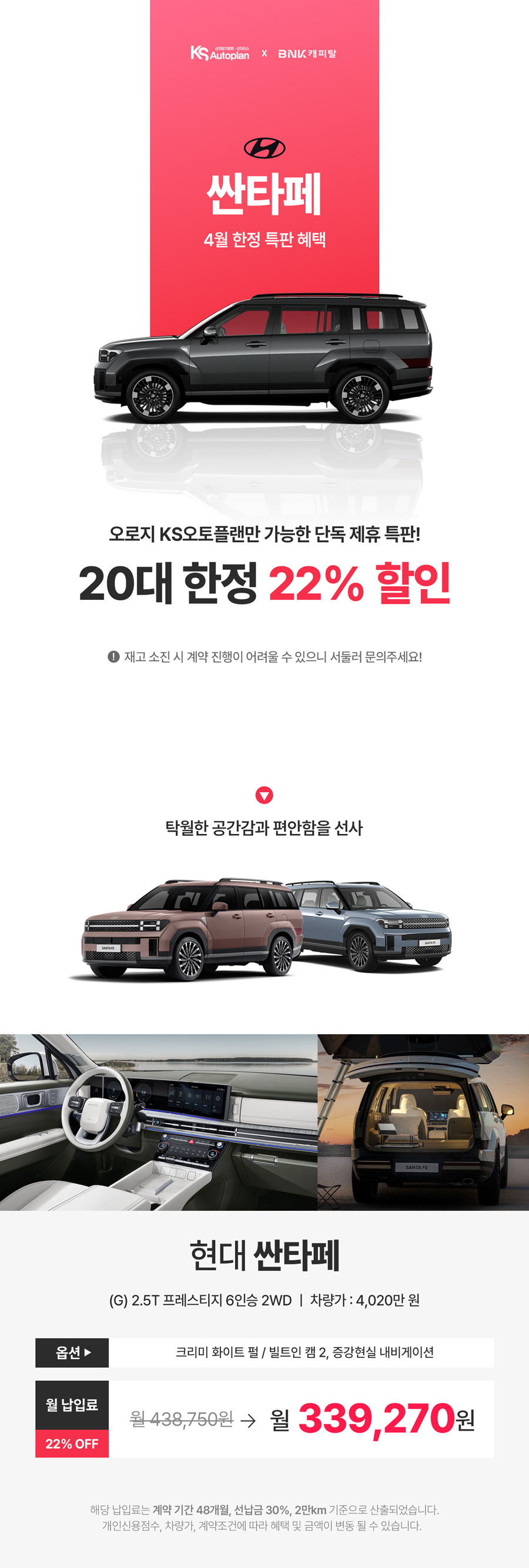 [현대 싼타페] KS오토플랜 X BNK캐피탈 제휴 특판