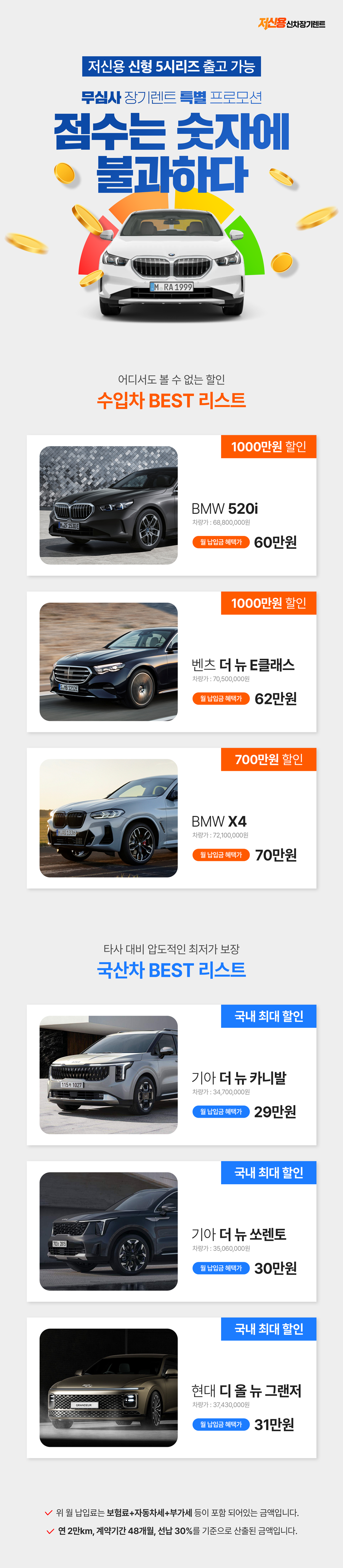 무심사 저신용 장기렌트 특별 프로모션!!
