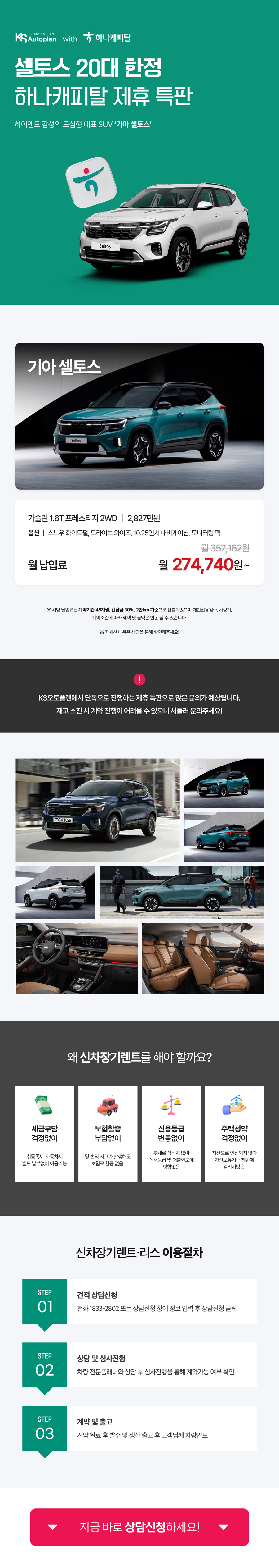 [기아 셀토스] KS오토플랜 x 하나캐피탈 제휴 특판