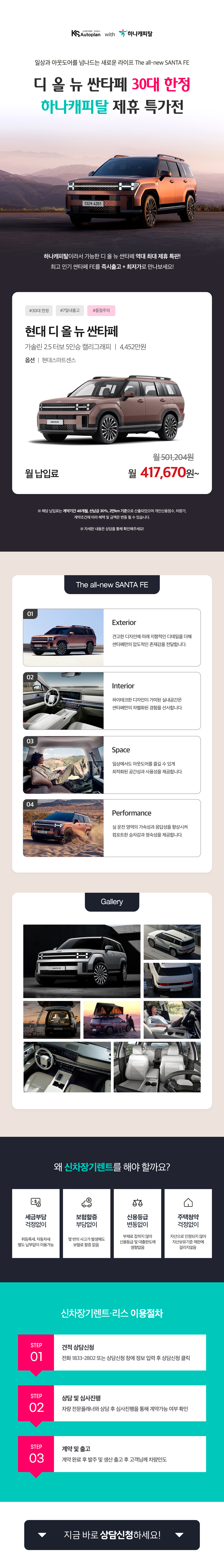 '디 올 뉴 싼타페' 30대 한정 하나캐피탈 제휴 특가전!