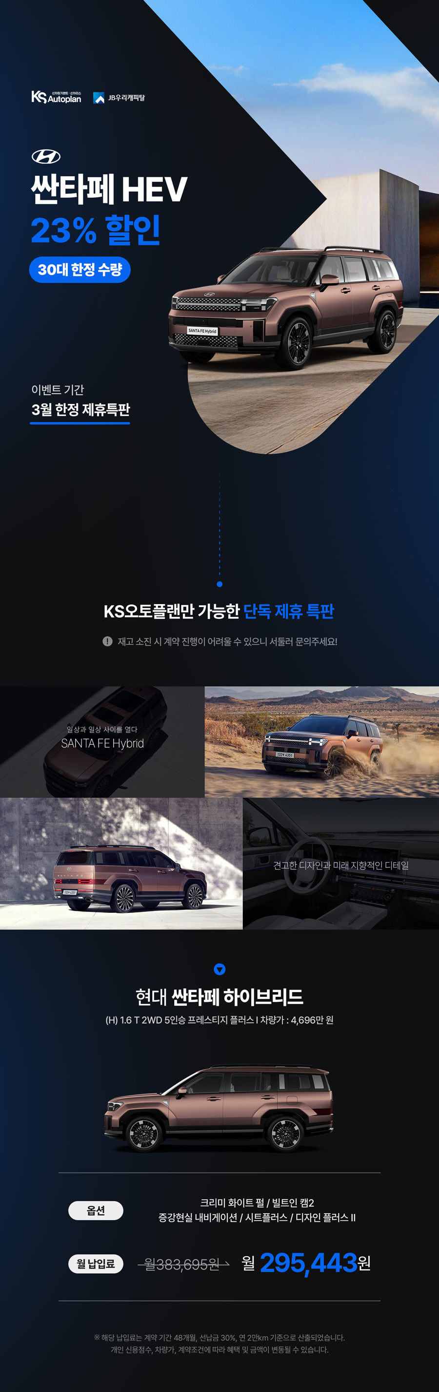 [현대 싼타페 HEV] KS오토플랜 X JB우리캐피탈 제휴 특판
